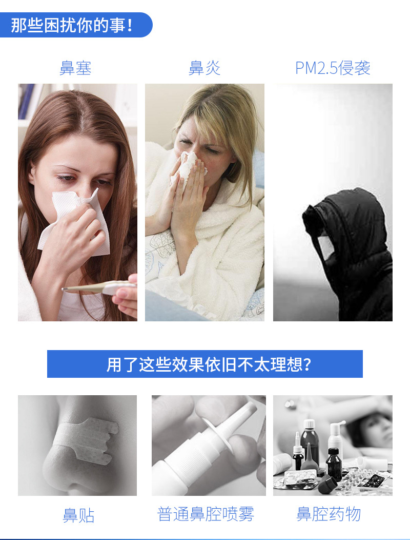 2)清除鼻腔分泌物,緩解感冒、鼻炎和鼻-鼻竇炎癥狀;